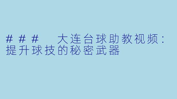### 大连台球助教视频:提升球技的秘密武器-大连台球助教视频