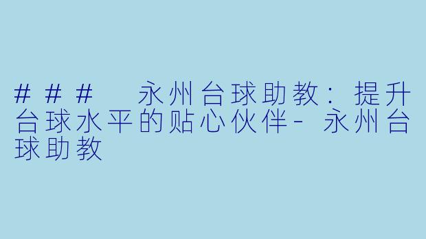 ### 永州台球助教:提升台球水平的贴心伙伴-永州台球助教