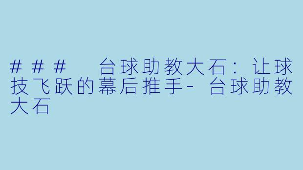 ### 台球助教大石:让球技飞跃的幕后推手-台球助教大石