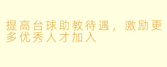 为了激励更多优秀人才投身台球助教的行业,我们呼吁各俱乐部和学校提高台球助教的待遇。首先,应该建立起完善的薪酬体系,让台球助教得到公平的报酬。其次,可以提供更多的福利待遇,如培训机会、健康保险等,提升员工的工作满意度和忠诚度。
