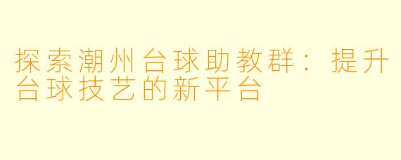 探索潮州台球助教群:提升台球技艺的新平台-潮州台球助教群
