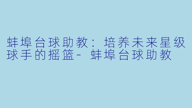 蚌埠台球助教:培养未来星级球手的摇篮-蚌埠台球助教