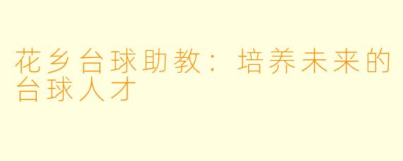 花乡台球助教:培养未来的台球人才-花乡台球助教