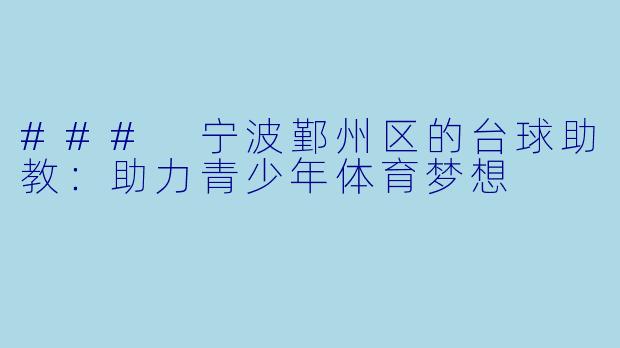 ### 宁波鄞州区的台球助教:助力青少年体育梦想-宁波鄞州区台球助教