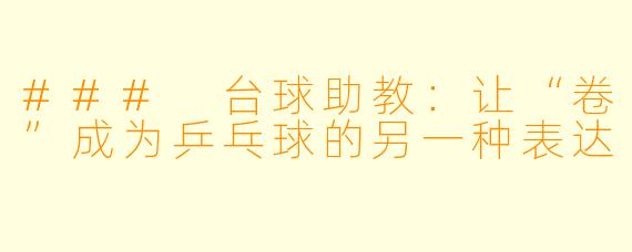 ### 台球助教:让“卷”成为乒乓球的另一种表达-台球助教太卷