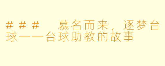 ### 慕名而来,逐梦台球——台球助教的故事-慕名台球助教
