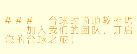 ### 台球时尚助教招聘——加入我们的团队,开启您的台球之旅!-台球时尚助教招聘