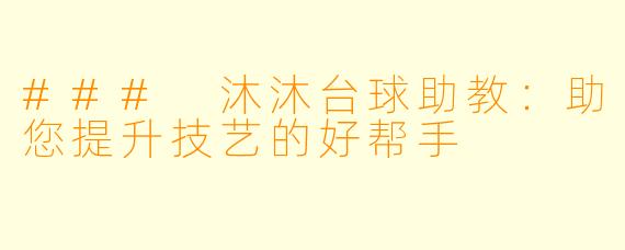 ### 沐沐台球助教:助您提升技艺的好帮手-沐沐台球助教