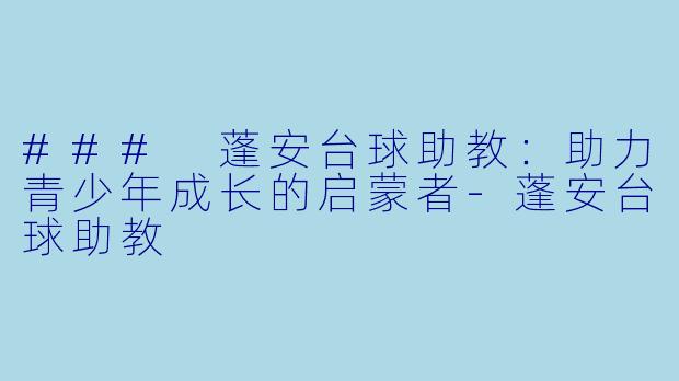 ### 蓬安台球助教:助力青少年成长的启蒙者-蓬安台球助教