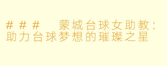 ### 蒙城台球女助教:助力台球梦想的璀璨之星-蒙城台球女助教