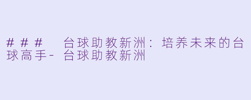 ### 台球助教新洲:培养未来的台球高手-台球助教新洲