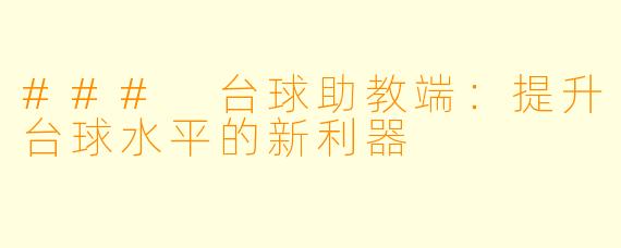 ### 台球助教端:提升台球水平的新利器-台球助教端