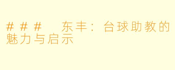 ### 东丰:台球助教的魅力与启示-台球助教东丰