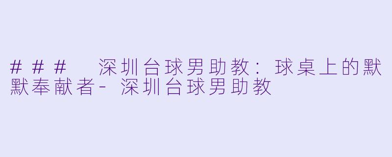 ### 深圳台球男助教:球桌上的默默奉献者-深圳台球男助教