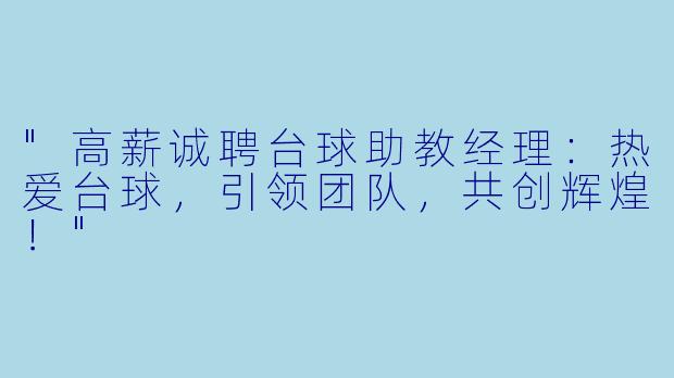 "高薪诚聘台球助教经理:热爱台球,引领团队,共创辉煌!"-台球助教经理招聘