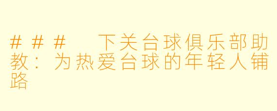 ### 下关台球俱乐部助教:为热爱台球的年轻人铺路-下关台球俱乐部助教