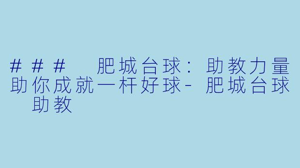 ### 肥城台球:助教力量助你成就一杆好球-肥城台球 助教