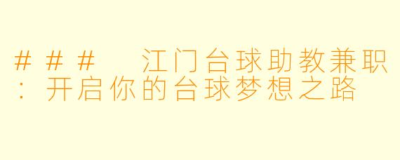 ### 江门台球助教兼职:开启你的台球梦想之路-江门台球助教兼职