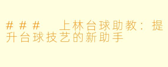 ### 上林台球助教:提升台球技艺的新助手-上林台球助教