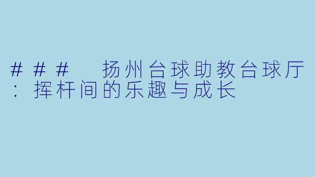 ### 扬州台球助教台球厅:挥杆间的乐趣与成长-扬州台球助教台球厅